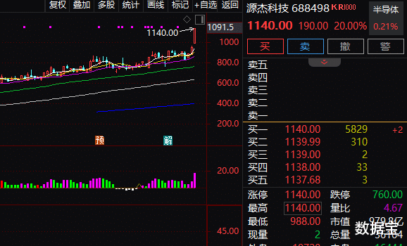 盘面上,CPO概念大幅拉升,铭普光磁、瑞斯康达、汇绿生态等涨停,源杰科技、长光华芯等涨超15%,其中源杰科技股价快速突破1000元、1100元大关,触及“20cm”涨停,成为A股历史上第八只千元股,股价超越寒武纪,跃居A股第二大高价股。